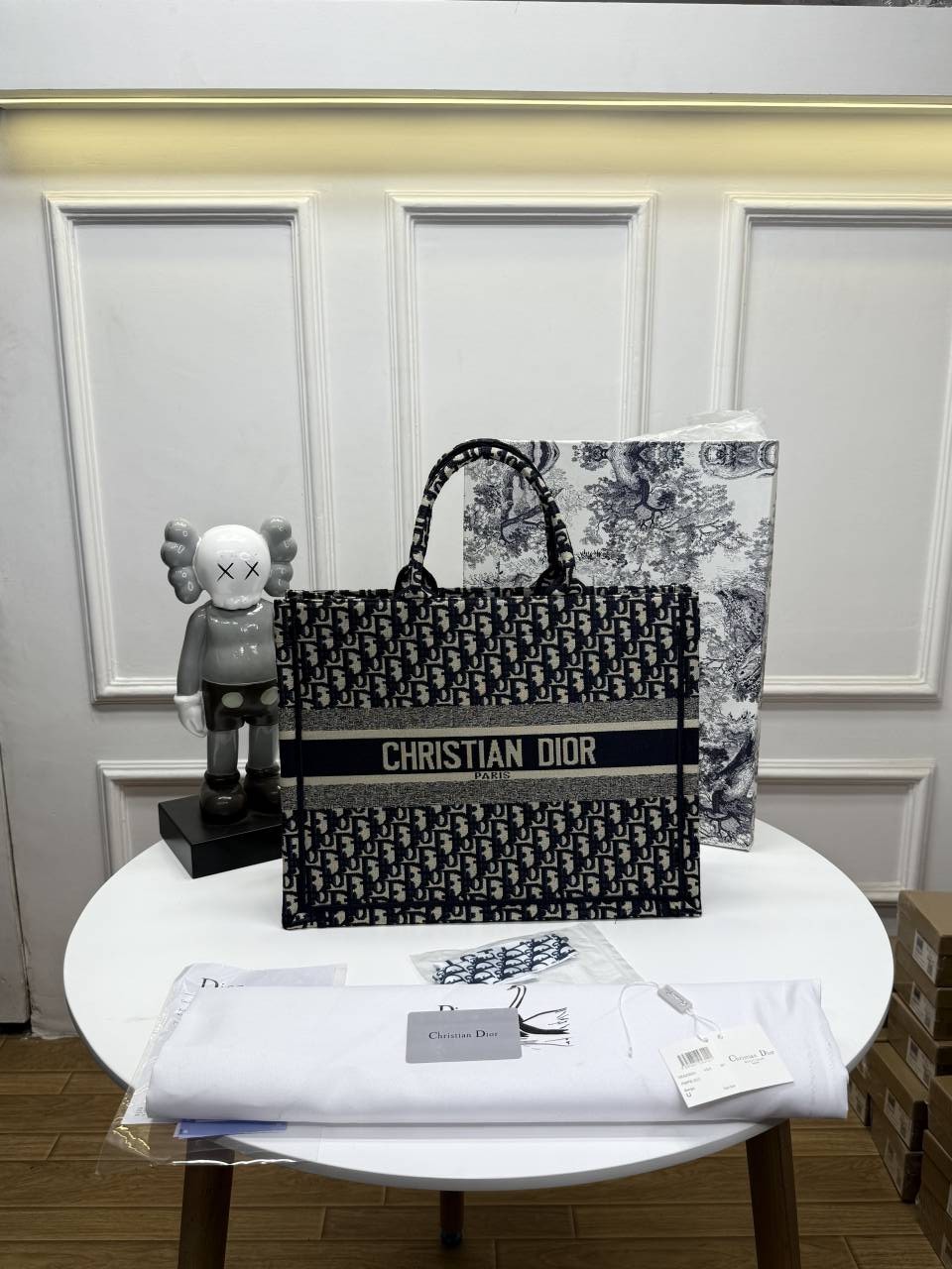 • Christian_Dior_BookTote_ecru_&_black_Toile_de_Jouy_Embroidery_With_OGbox_scarf_etc_462