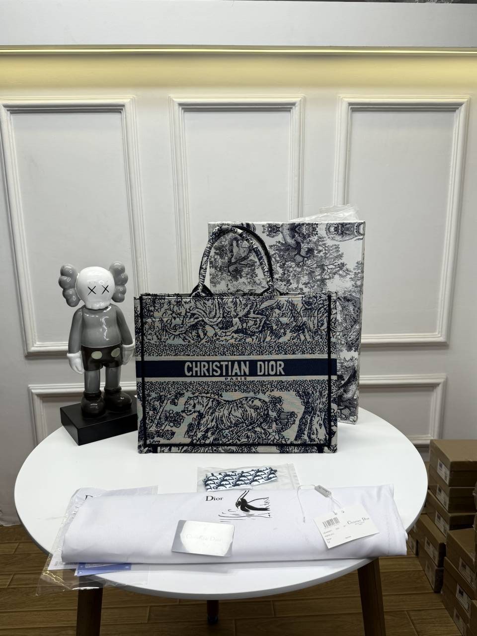 Christian_Dior_BookTote_ecru_&_black_Toile_de_Jouy_Embroidery_With_OGbox_scarf_etc_462
